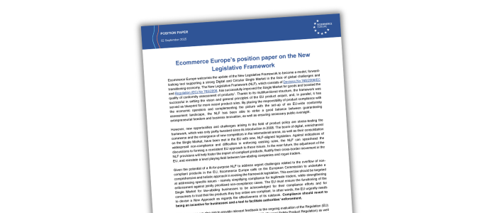 On 2 September, Ecommerce Europe submitted its contribution to the call for evidence on ensuring future-proof rules in product legislation, launched by the European Commission. Concretely, the results of the consultation will feed into the upcoming revision of the New Legislative Framework (NLF), on which a legislative proposal is expected to be put forward in the third quarter of 2026. For more background information on the NLF, you can read our previous article published in April here. In its position paper, Ecommerce Europe notably calls on the European Commission to streamline definitions and rules of the EU product acquis – with a focus on strengthening enforcement, improve the uptake of digitalisation and e-commerce, and adapt the framework to the circular economy.