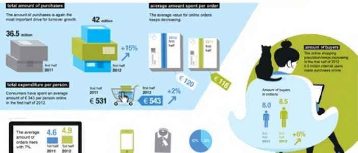 Ede, 24 September 2012 – Despite the continuing crisis, the turnover in products and services via the internet increased during the first half of 2012 to €4.61 billion. While the physical retail trade is still under pressure (CBS, 2012), the market for online sales remains stable, growing yet again by 9% in comparison with the first half of 2011. This can be seen in the Thuiswinkel Market Monitor 2012-1, twice-yearly research into consumer expenditure sponsored by PostNL, carried out by Blauw Research and verified via the retail panel of GfK. The research is commissioned by Thuiswinkel.org, the lobby organisation for almost 1700 webshops in the Netherlands.