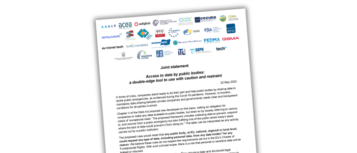 On 22 May, Ecommerce Europe co-signed a joint statement together with 26 other signatories on the European Data Act, focussing specifically on the provisions relating to business-to-government (B2G) data sharing. With the joint statement, the co-signatories call on EU policymakers to revise the proposed rules on B2G data sharing under the Data Act, as the current wording would allow any public body, at EU, national, regional, or local level, to request any type of data, including personal data, from any data holder, for any reason.