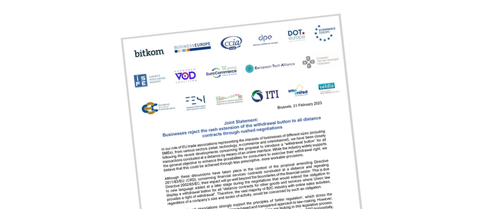 Last Friday, Coreper agreed on the introduction of a withdrawal button for all distance contracts. Ecommerce Europe, together with 16 other associations, is very concerned about the impact of this button on the digital commerce sector.