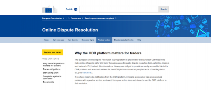 The Online Dispute Resolution (ODR) platform is provided by the European Commission to make online shopping safer and fairer through access to quality dispute resolution tools. The ODR platform is not connected to any trader and aims to increase trust in online shopping, specifically cross-borders, by resolving disputes using Alternative Dispute Resolution.