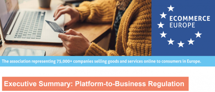 On 26 April, the European Commission proposed an EU Regulation on fairness and transparency in online platform trading, together with the creation of an Observatory on the online platform economy. The European Commission’s objective is to put in place a harmonized framework for minimum transparency and redress rights, which should protect companies that depend on online platforms for reaching consumers, while crucially safeguarding platforms’ innovation potential. Ecommerce Europe overall welcomed the publication of the Commission’s Proposal. However, Ecommerce Europe wants to stress that this Regulation should strike the right balance between online platforms’ interests and the interests of online merchants, especially SMEs that sell via marketplaces. This Executive Summary gives a brief overview on the position of Ecommerce Europe on the proposed Regulation and provides specific recommendations on how to improve it and achieve this fair balance.