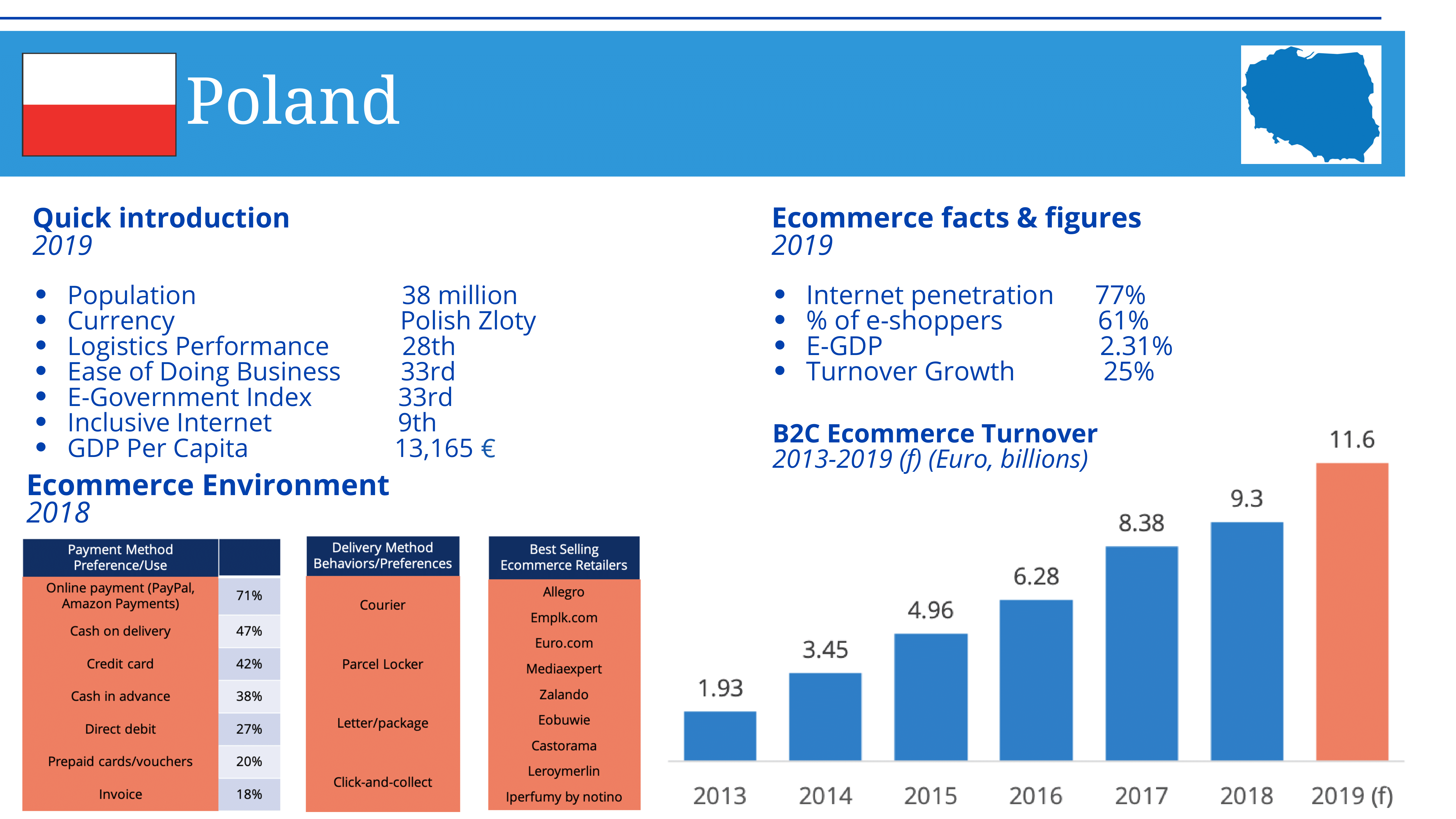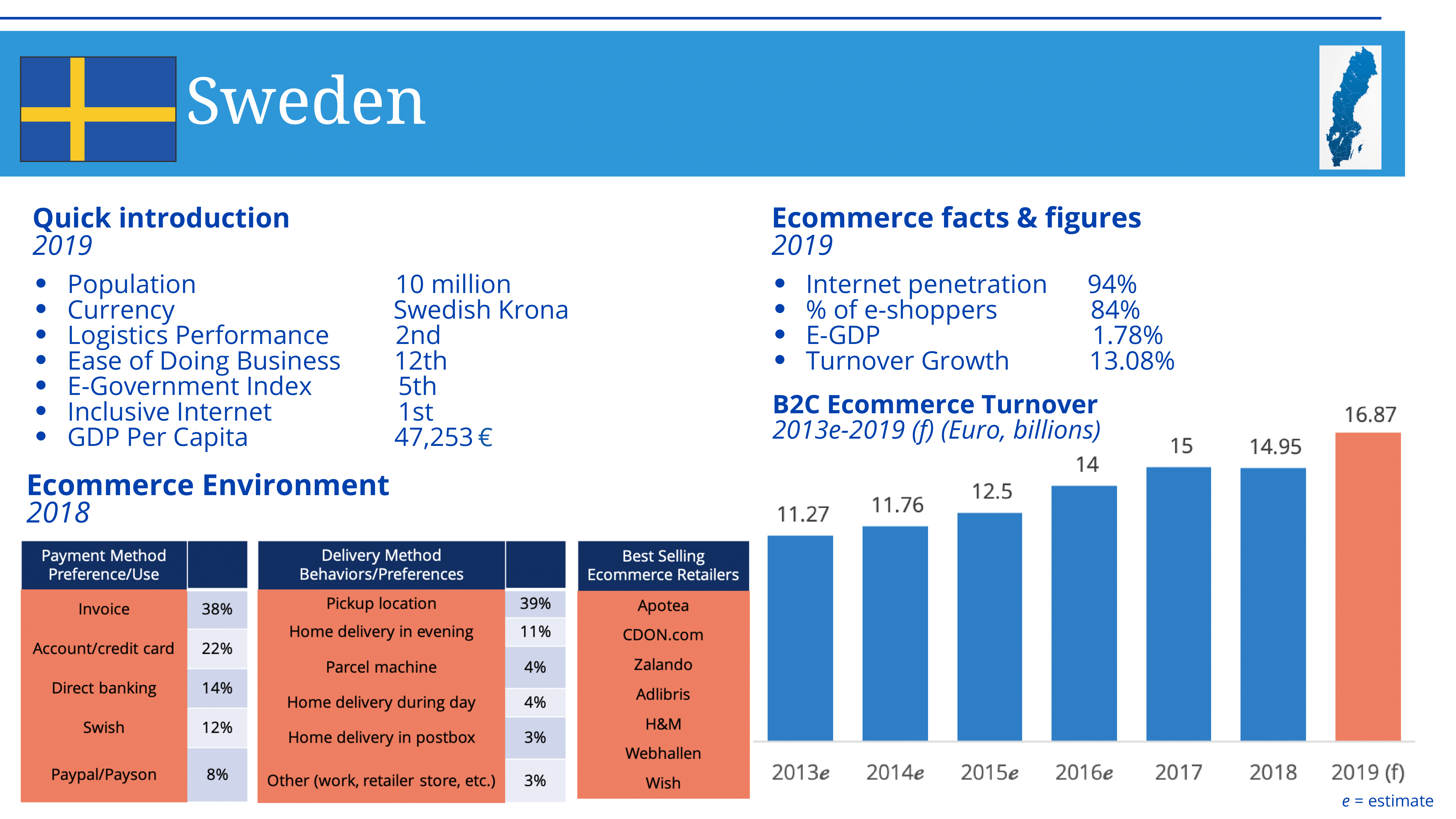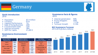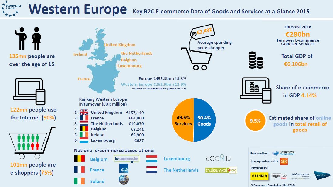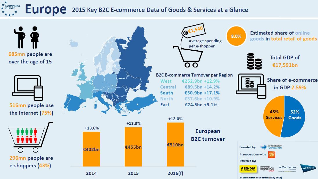 Founded by leading national e-commerce associations, its mission is to advance the interests and influence of e-commerce in Europe through advocacy, communication and networking. Ecommerce Europe publishes yearly reports on B2C e-commerce around the world. In partnership with the Ecommerce Foundation, Ecommerce Europe regularly provides up-to-date infographics on the European and Global e-commerce market.