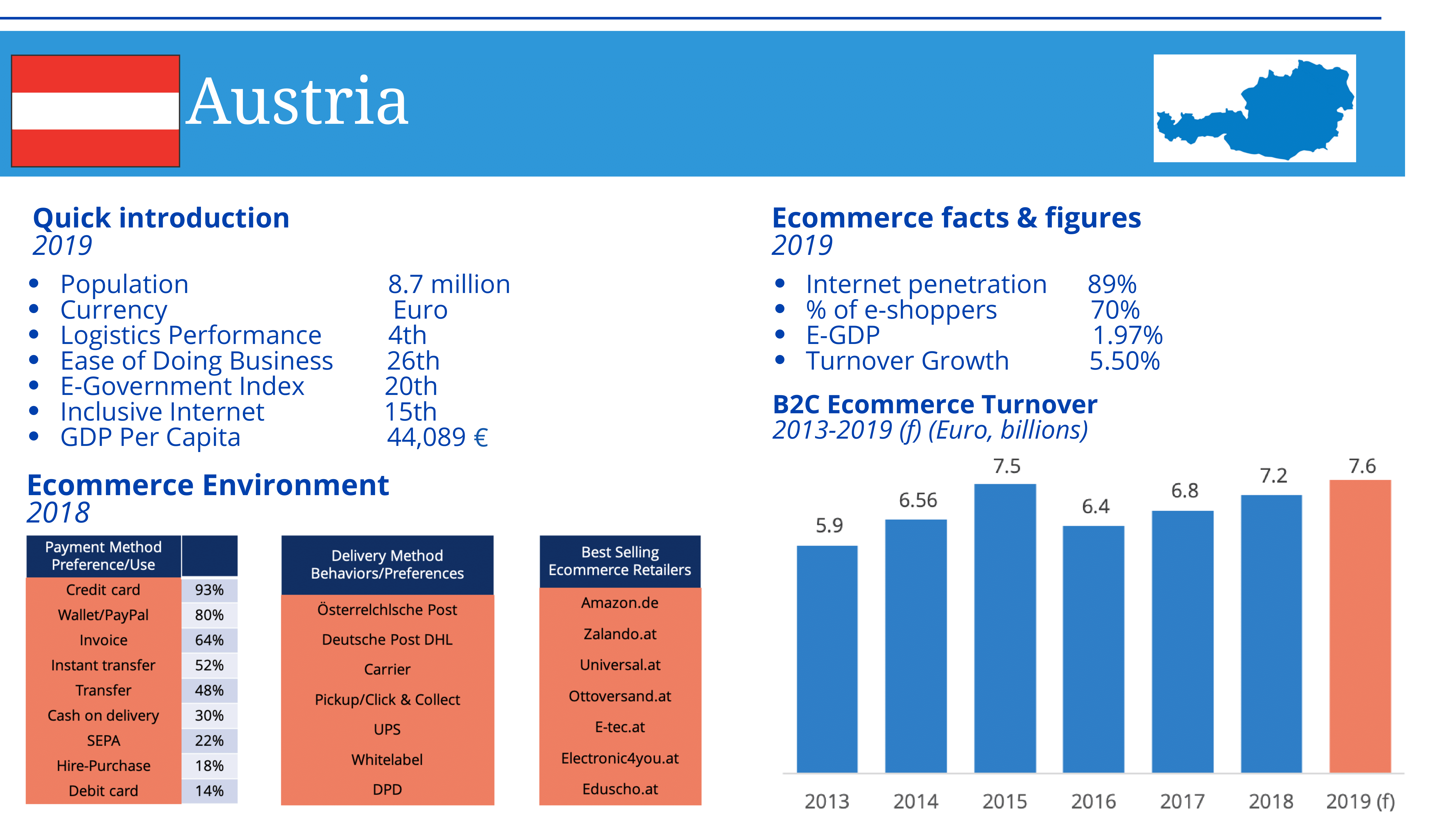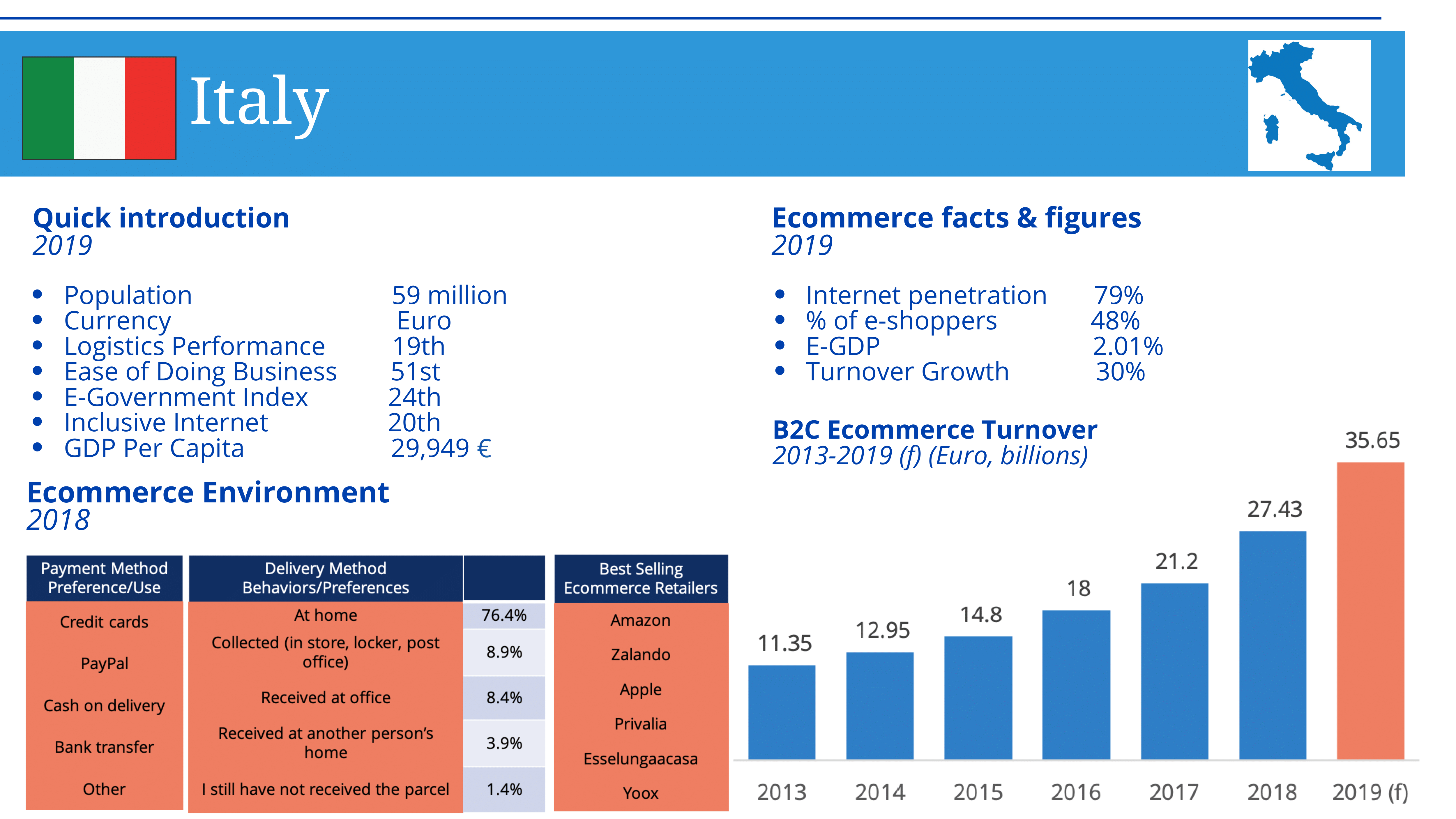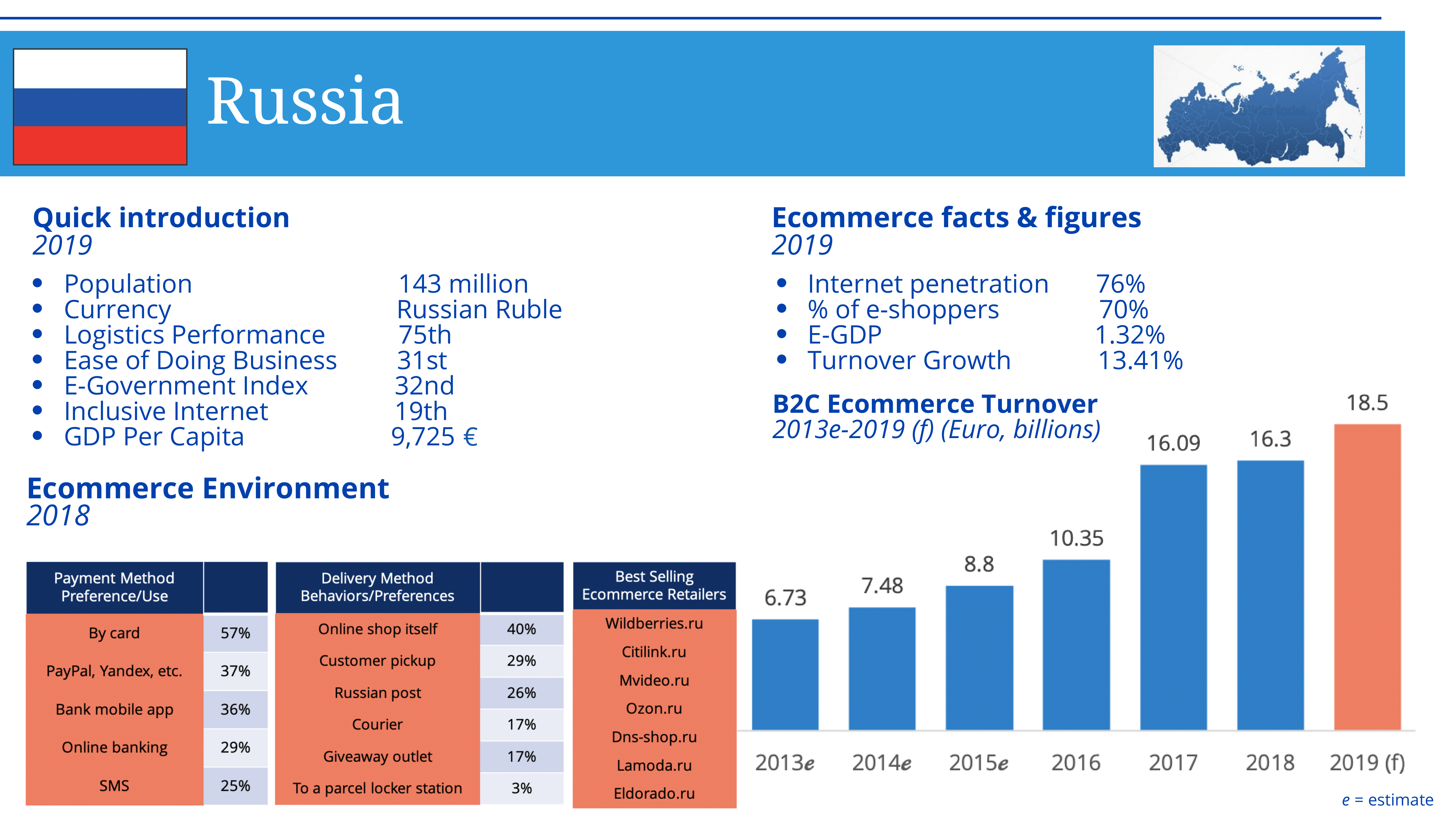 Founded by leading national e-commerce associations, its mission is to advance the interests and influence of e-commerce in Europe through advocacy, communication and networking. Ecommerce Europe publishes yearly reports on B2C e-commerce around the world. In partnership with the Ecommerce Foundation, Ecommerce Europe regularly provides up-to-date infographics on the European and Global e-commerce market.