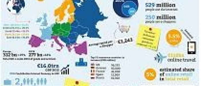 The total Gross Domestic Product (GDP) of Europe in 2012 is estimated to have reached €16 trillion, of which the GDP of the EU28 was just over 80 per cent. Ecommerce Europe estimates the share of the European Internet economy at 3.5%, a percentage that is set to double by 2016 and to triple by 2020 given the fact that the Internet economy grows much faster then the economy in general.