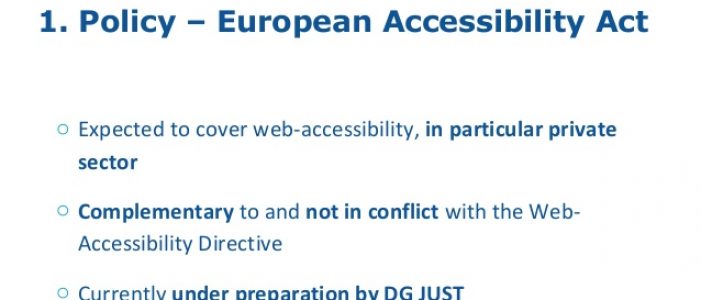 The European Disability Forum (EDF) participated in the discussions by stressing the importance of making products and services accessible for all, as a default position, rather than as a special service. In this particular aspect, the EDF identified the “design-for-all” approach taken by the proposal as a key element. Overall, the Forum praised the legislation as an important step in the right direction, but it criticized it for not going far enough.